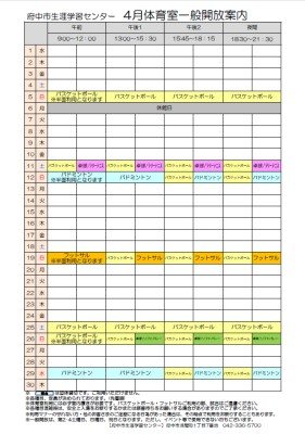 2026年4月 体育室・温水プール一般公開のご案内となります。