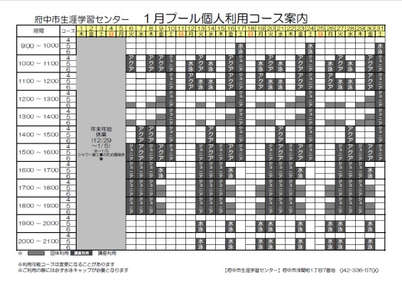 1月プール個人利用コース案内