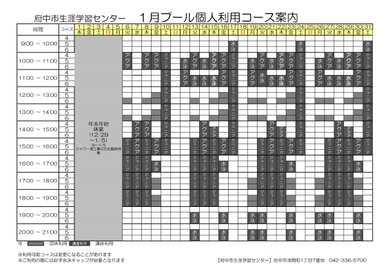 2026年1月 体育室・温水プール一般公開のご案内となります。